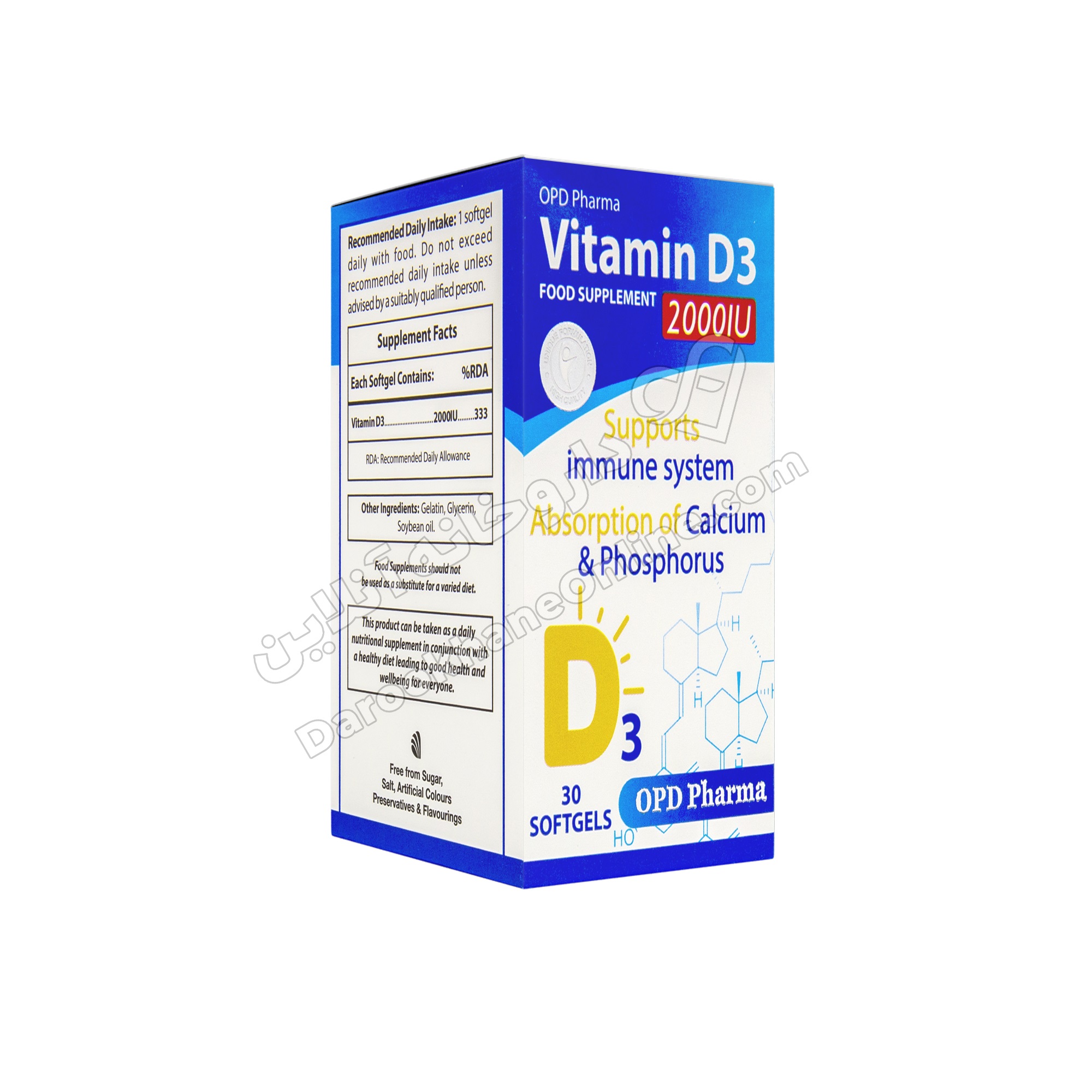 سافت ژل ویتامین د3 2000واحدی او پی دی فارما - 30 عددی